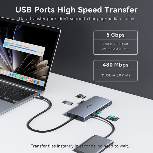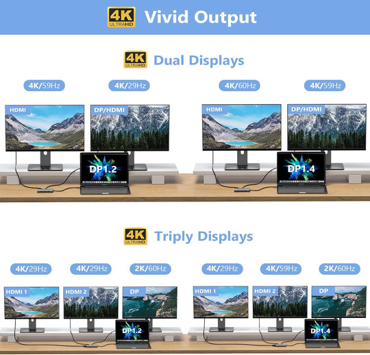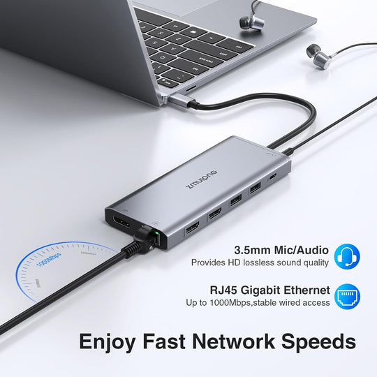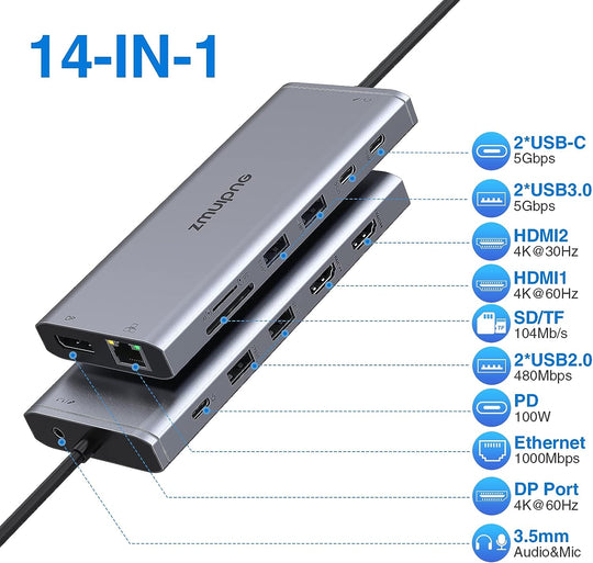 14 in 1 USB C Docking Station: This docking station could easily extend your laptop from one usb c/thunderbolt 3/4/type c port to 14 ports: 2 HDMI(4K), Displayport(4K@60Hz), USB C Power Delivery(100W), Gigabit Ethernet, 2 USB...Sale price $69.99Regular price $89.99 -