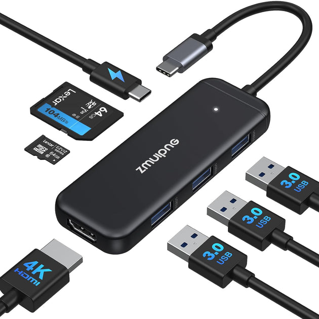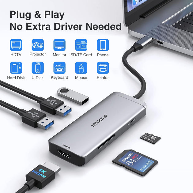 USB C Hub HDMI Adapter for MacBook Pro Air, 6 IN 1 USB C Dongle Mac Adapter with 4K HDMI, 3 USB 3.0 Ports, SD/TF for Dell XPS, Surface, HP and More Type C Devices