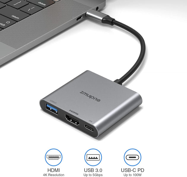 USB C to HDMI Adapter, 3 in 1 HDMI to USBC Digital AV Multiport Adapter,USB Type C Converter to 4K HDMI, USB 3.0,100W PD for MacBook Pro Air,iPad Pro 2020,Chromebook,Dell XPS,Surface, Samsung