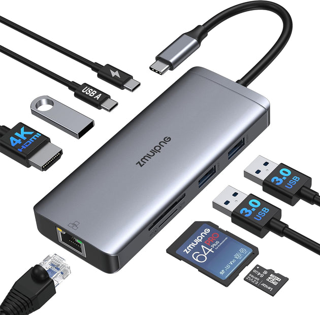USB C Hub Multiport Adapter, USB C Dock with Ethernet HDMI, 9 IN 1 USBC Hub to 4K HDMI,Ethernet,100W PD,USB-C,3 USB Ports,SD/TF, USB Type C Dongle Docking Station for MacBook,Surface,Dell,HP and More