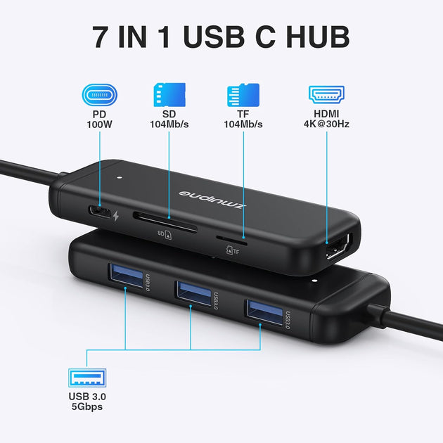 USB C Hub Multiport Adapter for MacBook Pro Air 2021, 7 IN 1 USB C Dongle to HDMI Mac USB Adaptor,USB Type C Hub to 4K HDMI, 100W PD, 3 USB Ports,SD/TF for Surface, Dell XPS 13 15 and More