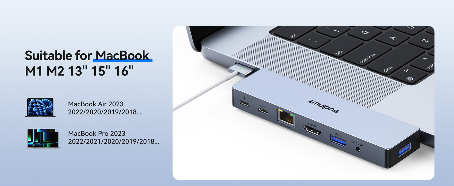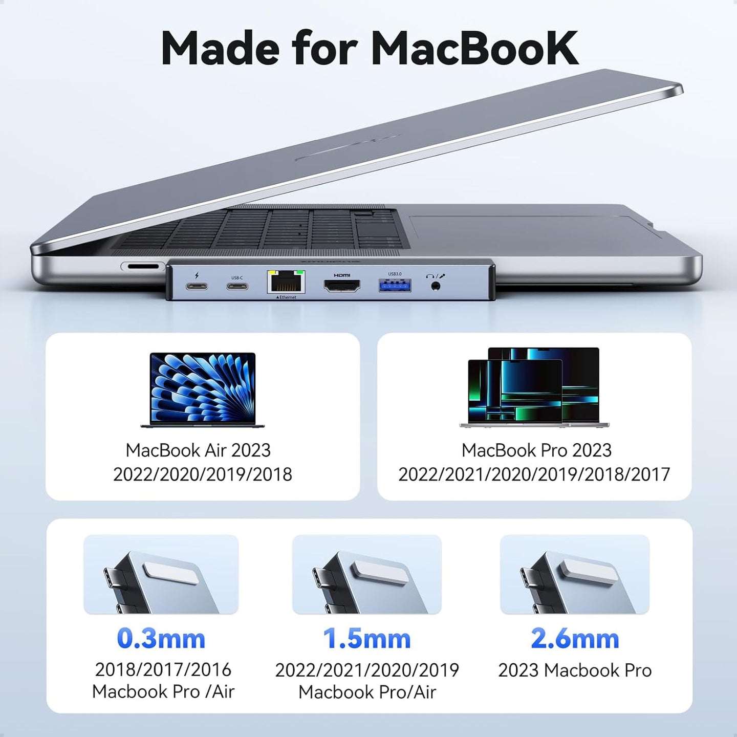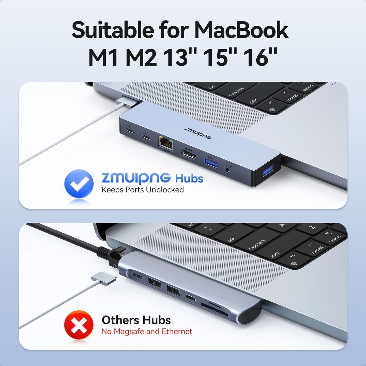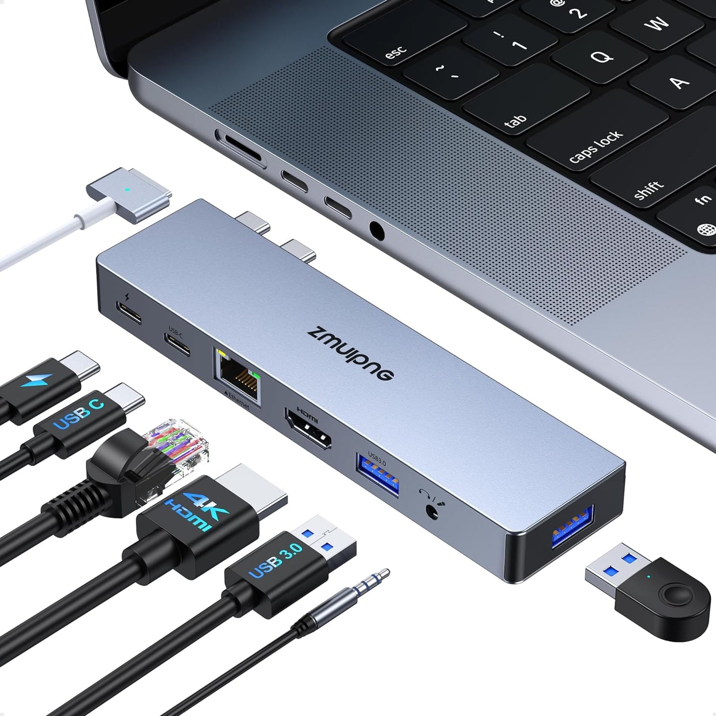 USB C HUB Adapter for Macbook Pro/Air 2023 M1 M2 with 4K HDMI+2USB 3.0+USB C+Ethernet+Audio+100W PD Port Mac Macbook Dongle Adapter Accessories