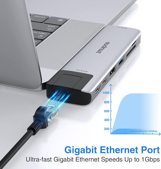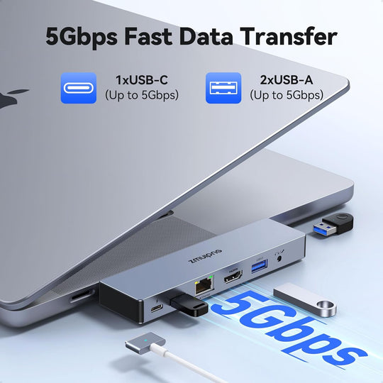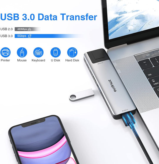 USB C HUB Adapter for Macbook Pro/Air 2023 M1 M2 with 4K HDMI+2USB 3.0+USB C+Ethernet+Audio+100W PD Port Mac Macbook Dongle Adapter Accessories