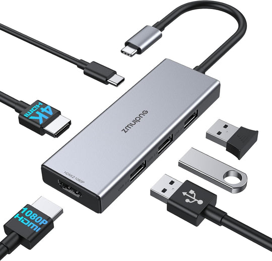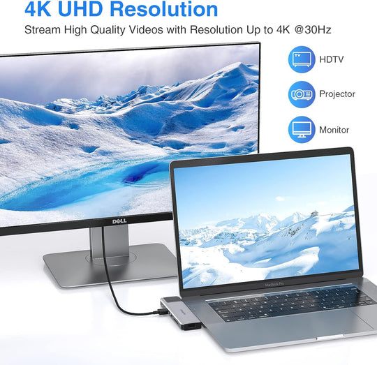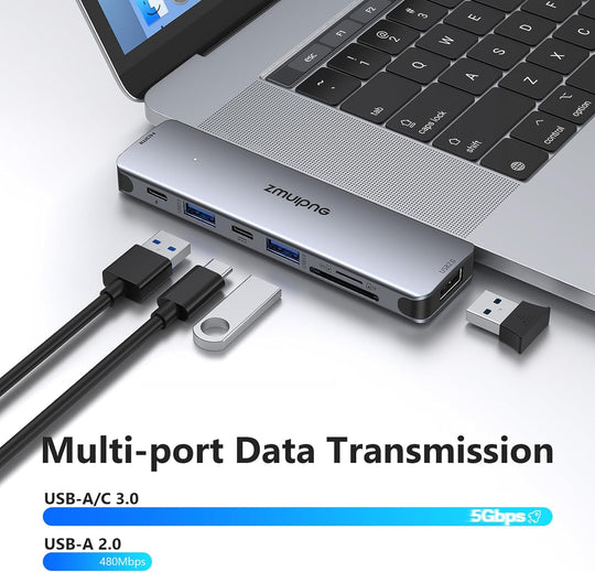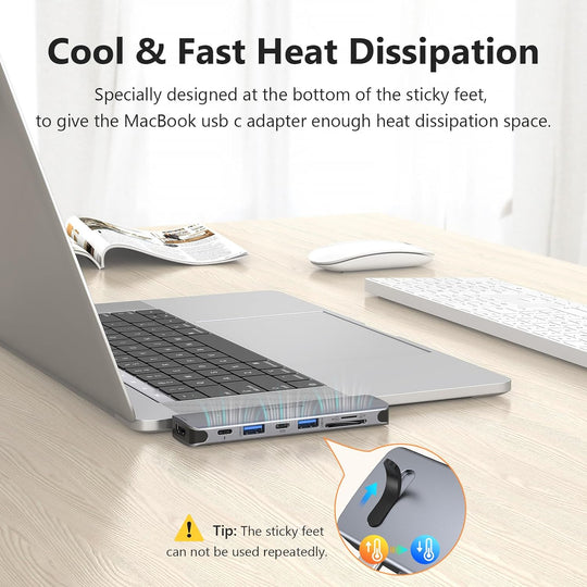 【MacBook Pro Adapter 7 IN 2】 Built with aluminum alloy case, specially accessory designed for MacBook Pro 2023/2022/2021/2020/2019/2018, MacBook Air 2023/2022/2020/2019/2018; Easily fulfill your daily use by extending two USB C port to 4K@30Hz HDMI, Thunderbolt...Sale price $39.99Regular price $49.99 -