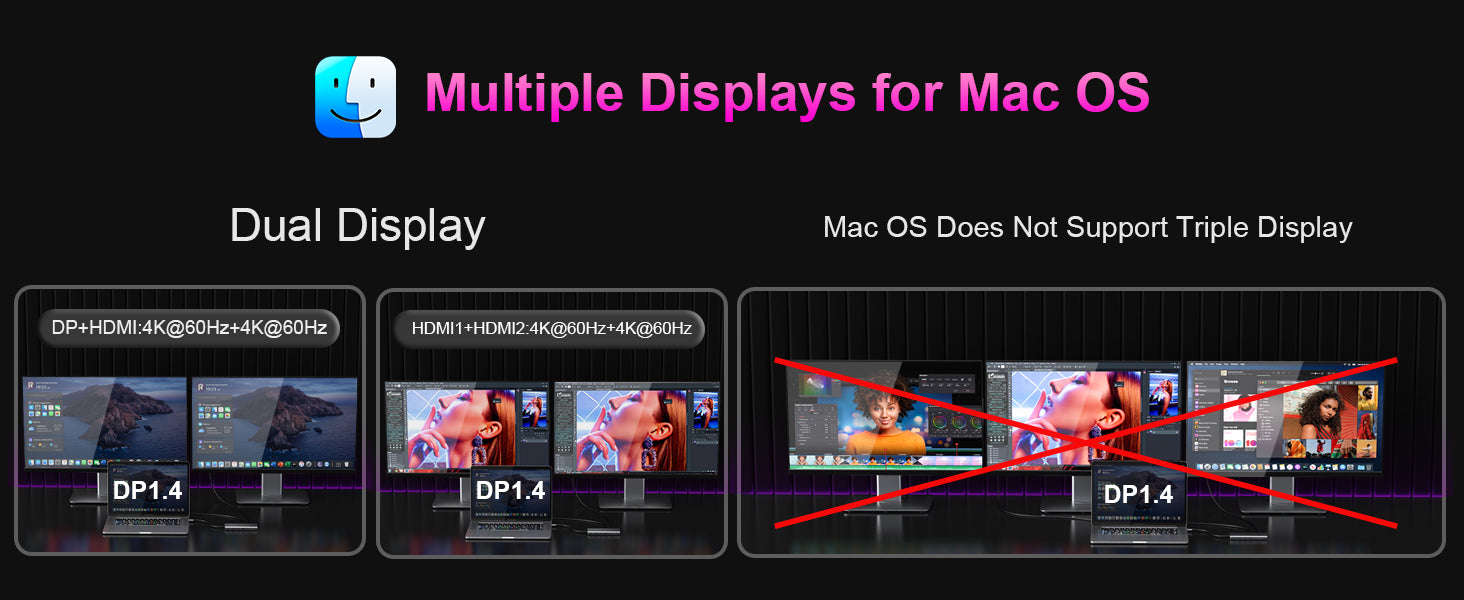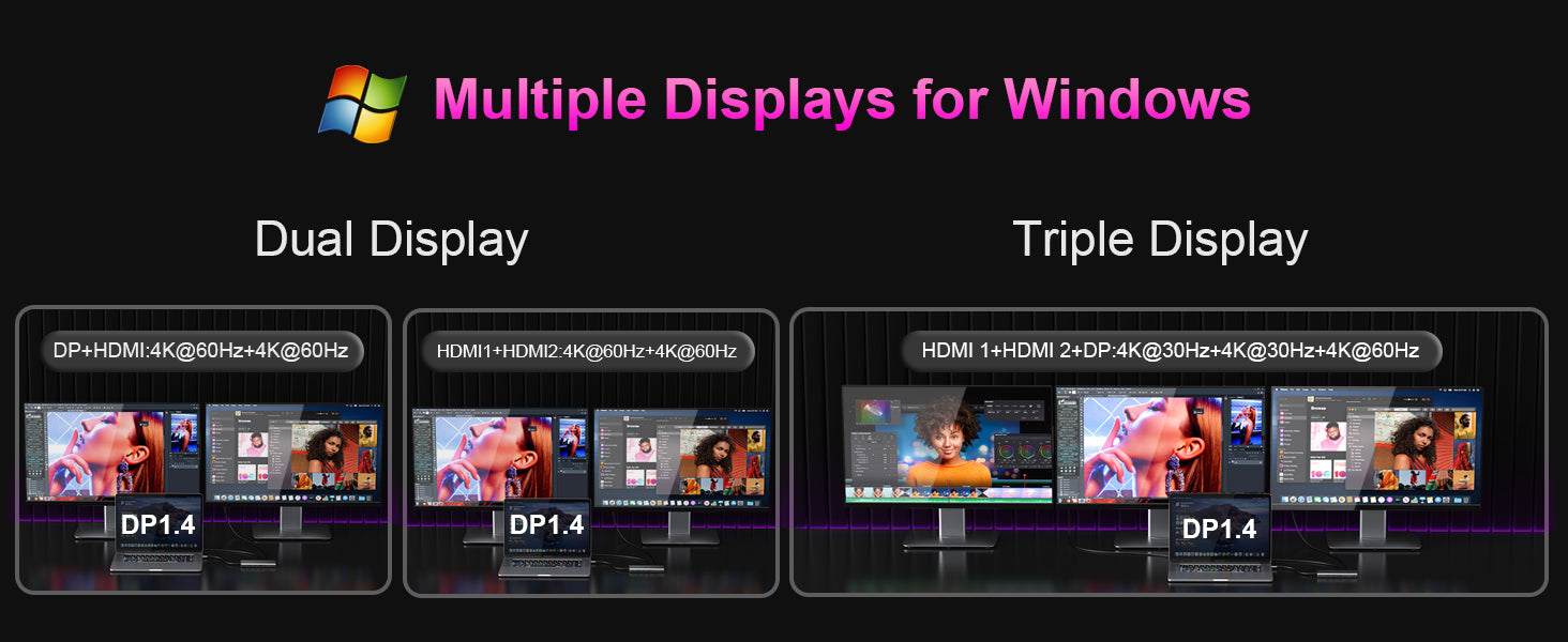 - 【4K Triple Display Laptop Docking Station】: ZMUIPNG USB C Docking Station will hook up triple displays to dual HDMI in 4K@30Hz and displayport in 4K@60Hz (DP1.4 Source). ★★Windows System support MST and SST(Mirror & Extend Mode). All MacBook laptop only supports SST mode, MAC OS can only extend one monitor.