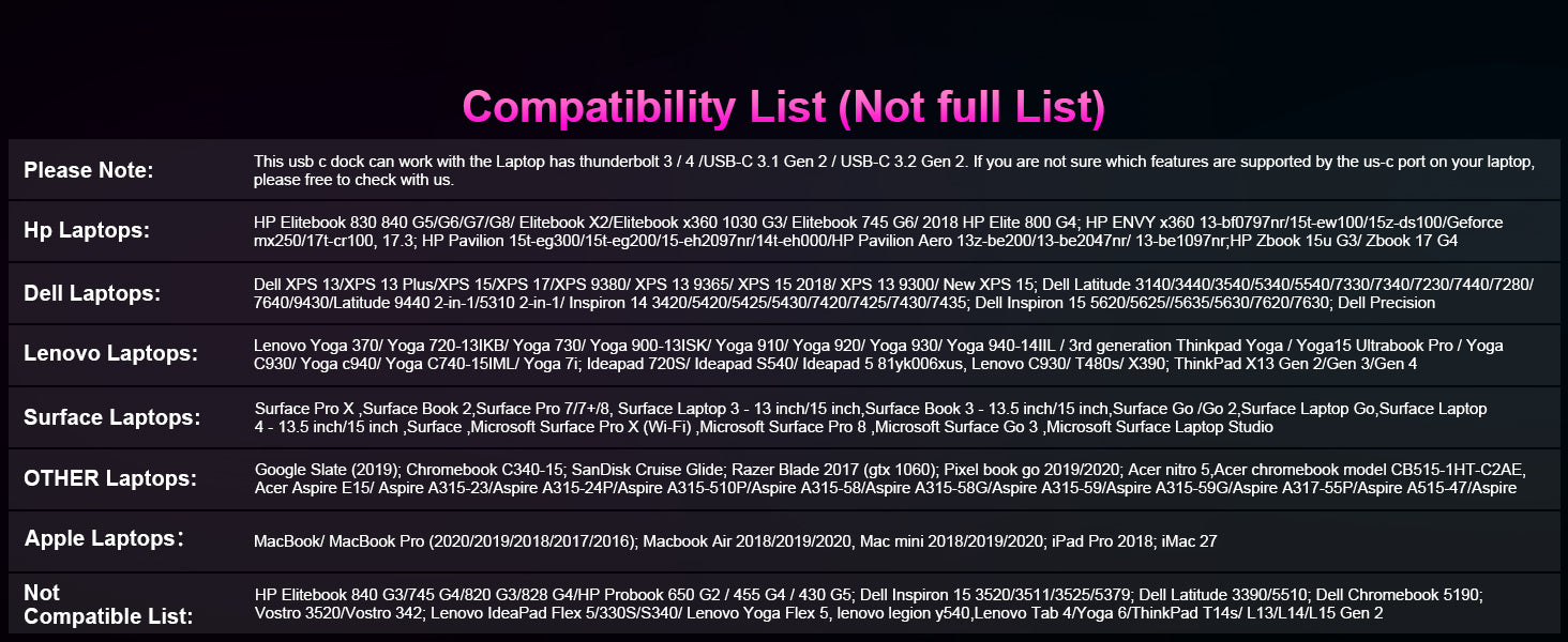 - 【100W PD Charging Port & Gigabit Ethernet】: This Computer Docking Station supports up to 100W input & 87W(safe)output into your laptop. Support 10/100/1000BASE-T Lan networks. This Laptop Docking Station with 3.5mm Audio/Mic 2-in-1 jack. ★★★Please Note: Power cord and power charger are not included. ❤️If you experience any issues while using this USB C Hub, please feel free to reach out to us, we will solve the problem for you within 24 hours!!
