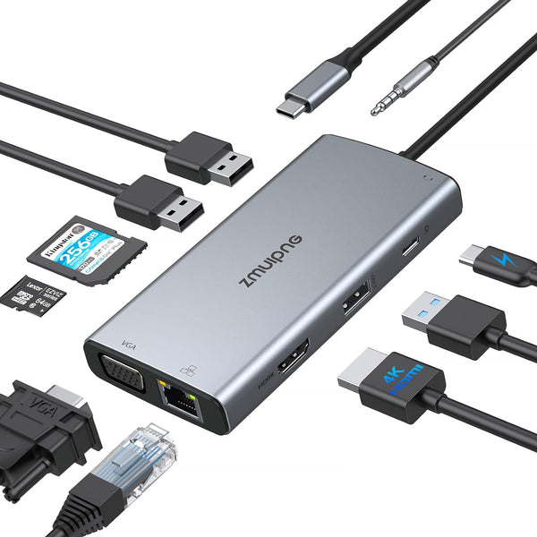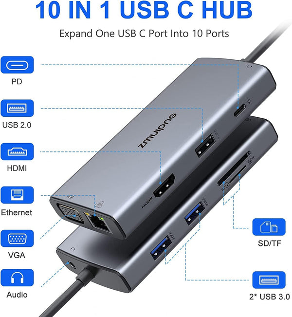 USB C Dock USB C Hub Multiport Adapter HDMI VGA, 10 IN 1 Thunderbolt Docking Station with Ethernet,100W PD,3 USB Ports,Audio,SD/TF for MacBook Pro Air 2021-2018,Dell,HP,Lenovo,Surface and More Laptops